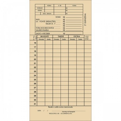 Modelo: CARTAO PONTO PALHA C/100 TILIBRA